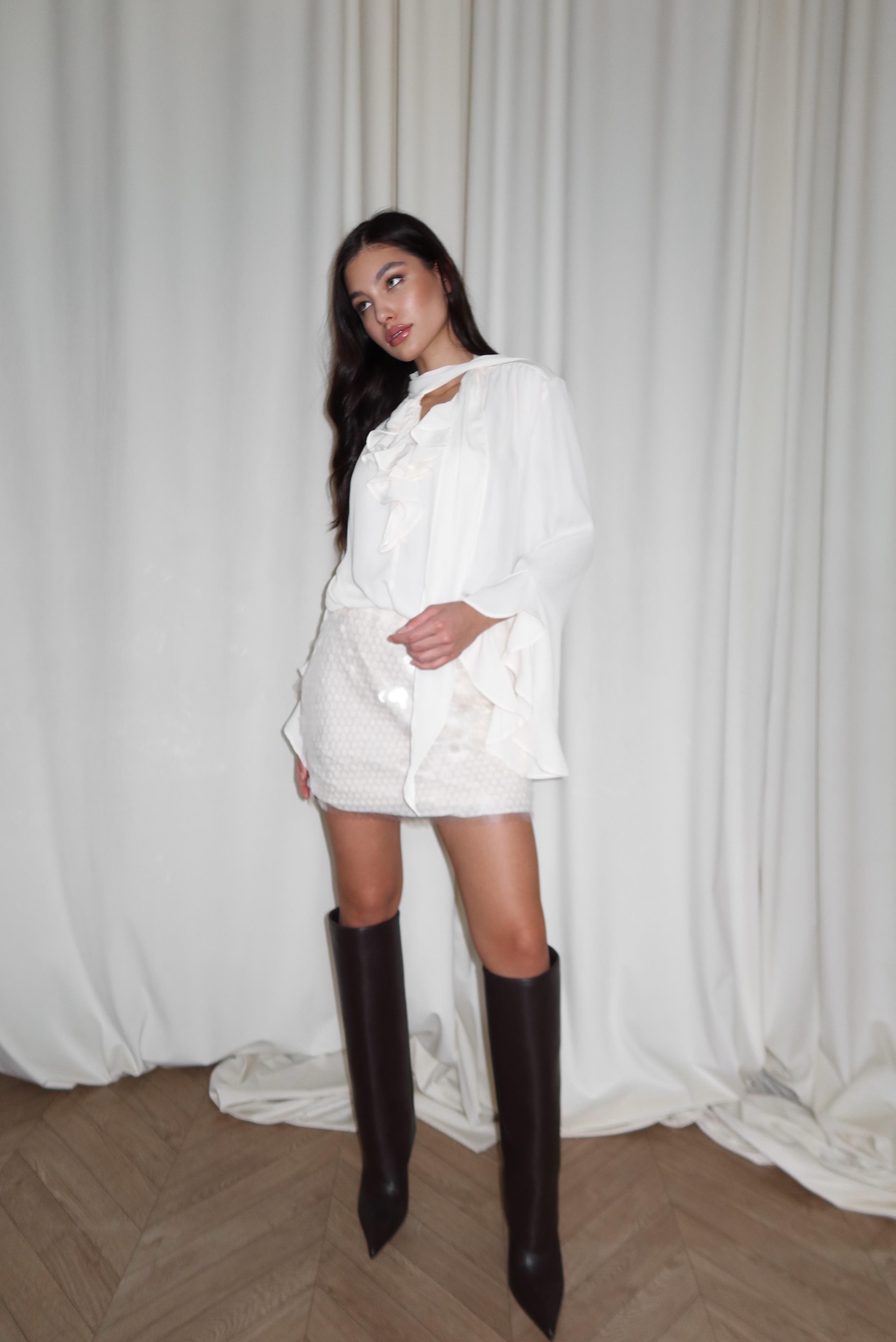Блузка шелковая, с воланами