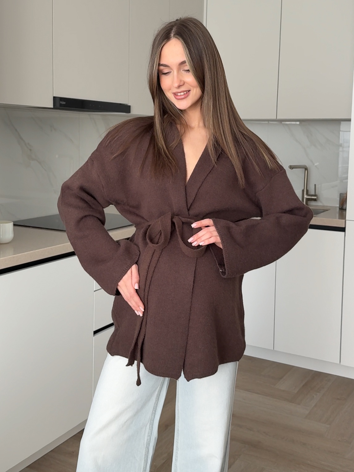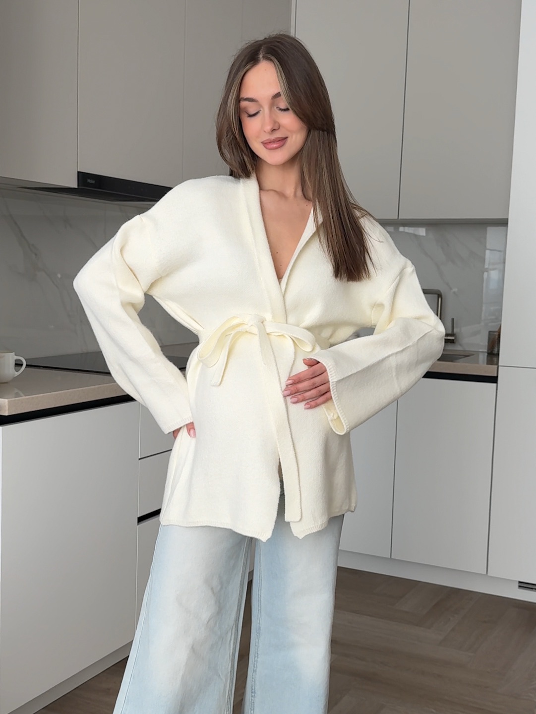 Кардиган вязаный, короткий, с поясом