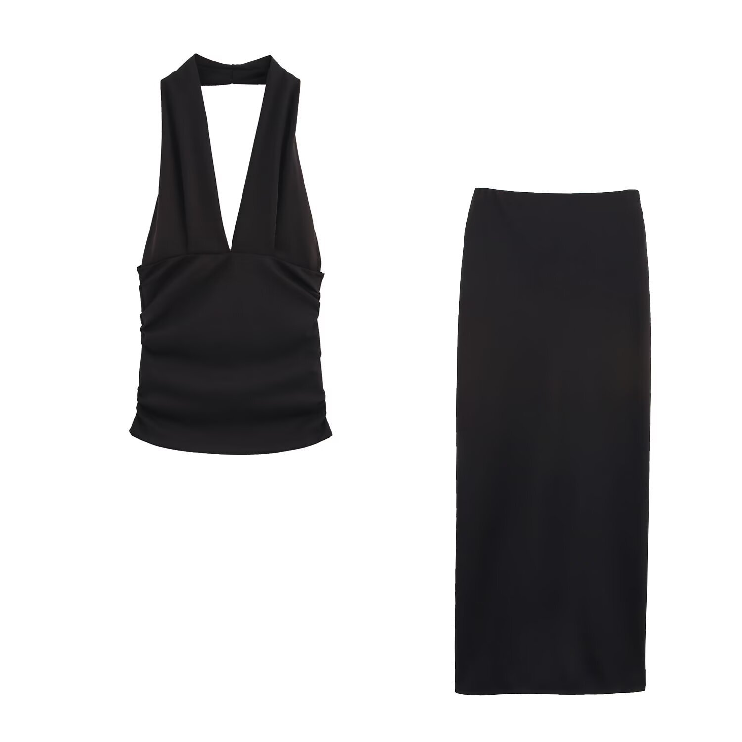 Комплект эластичный, топ на лямке через шею и длинная юбка