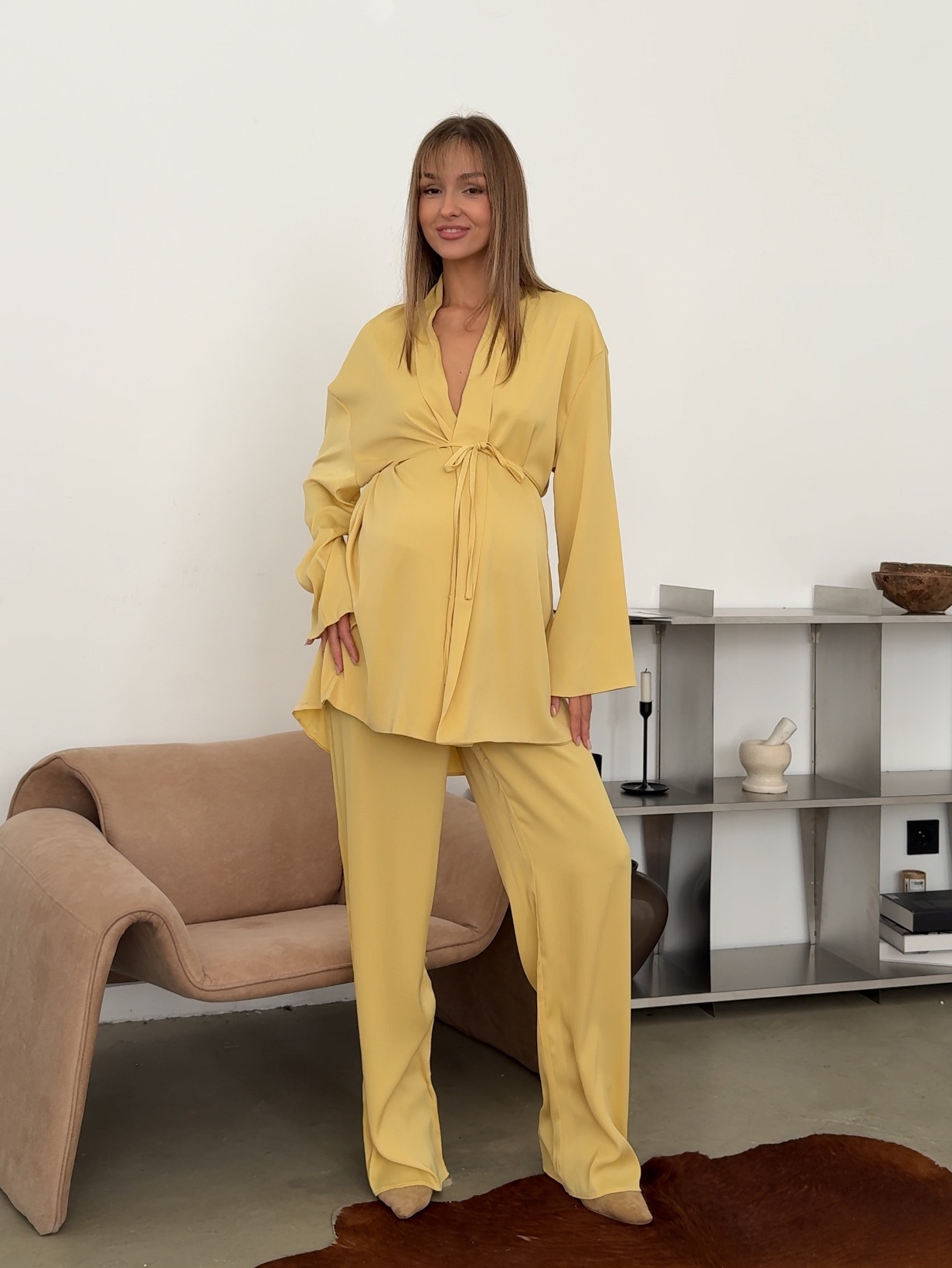 Комплект из тонкой ткани, кардиган на завязке и брюки