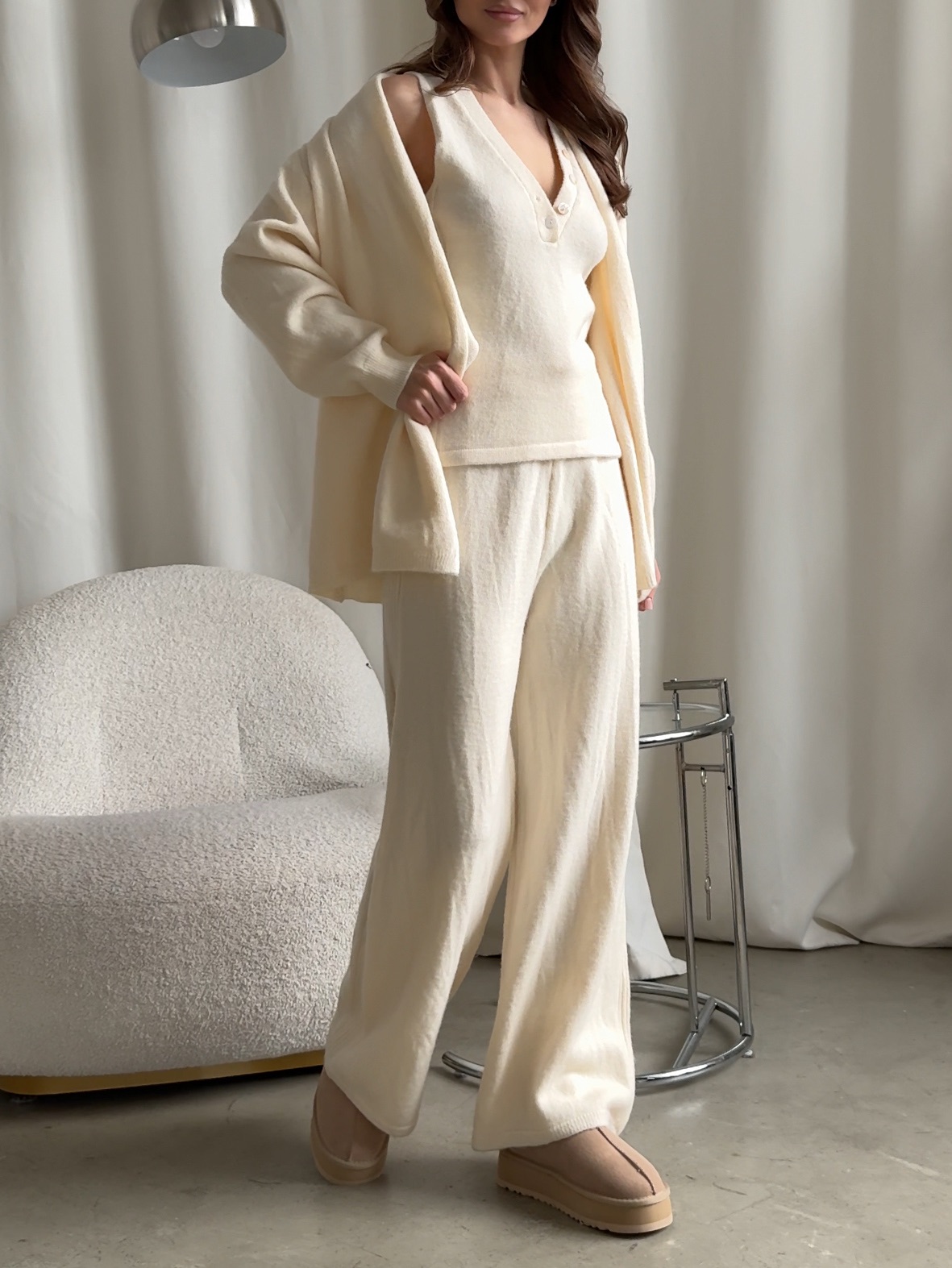 Комплект тройка вязаный, топ, брюки и короткий кардиган