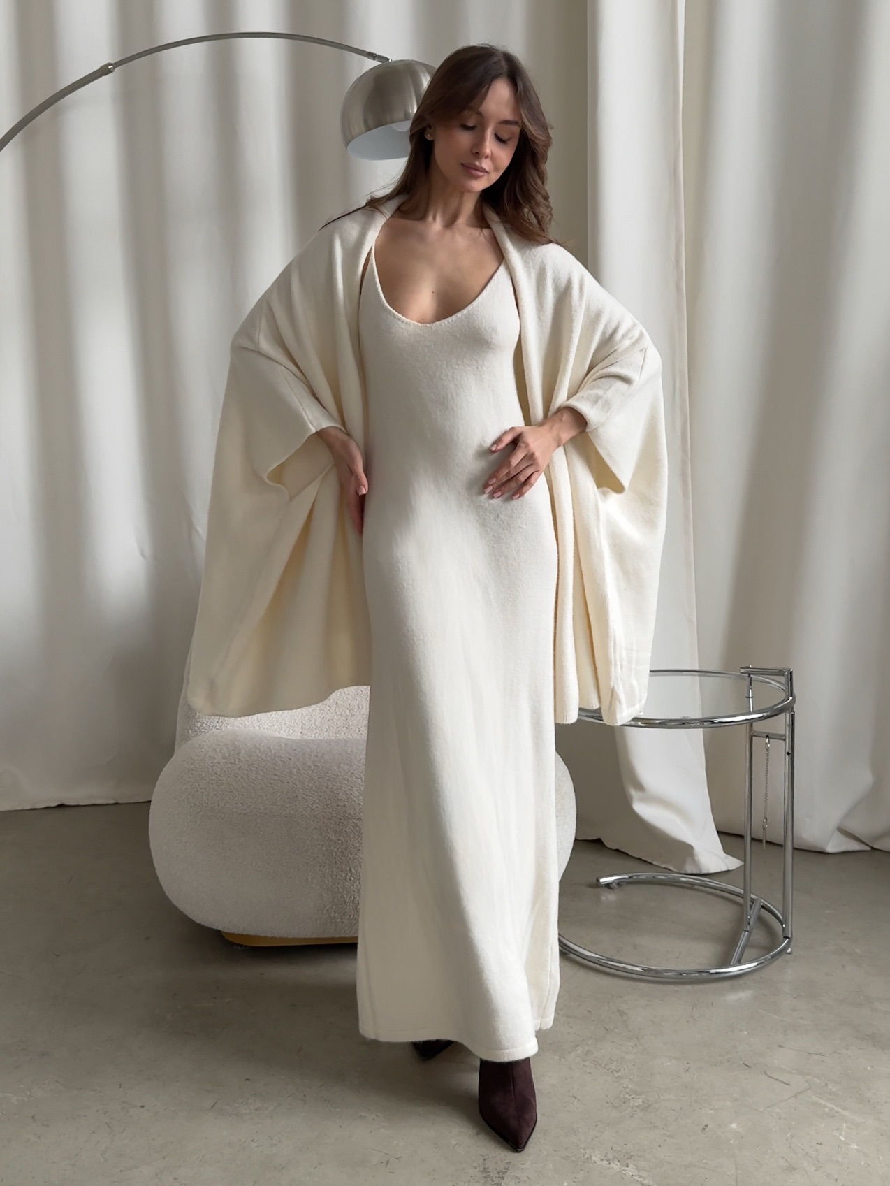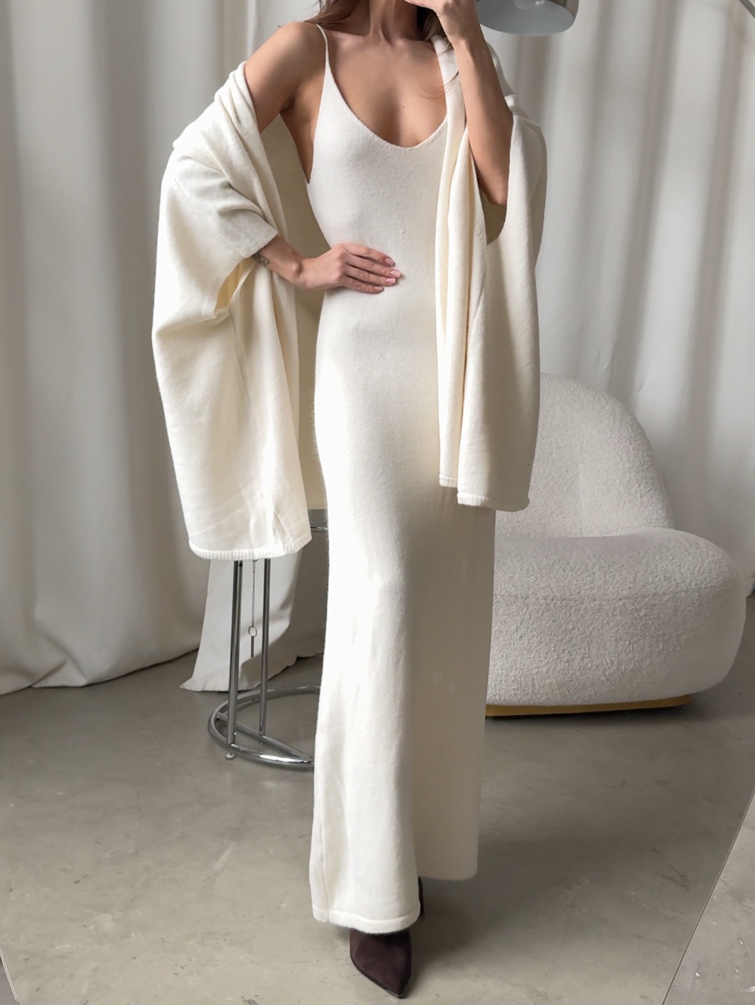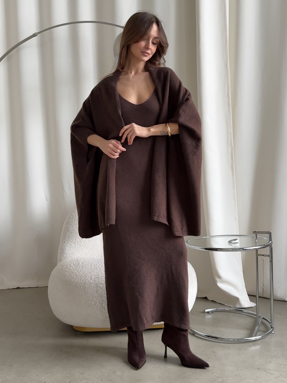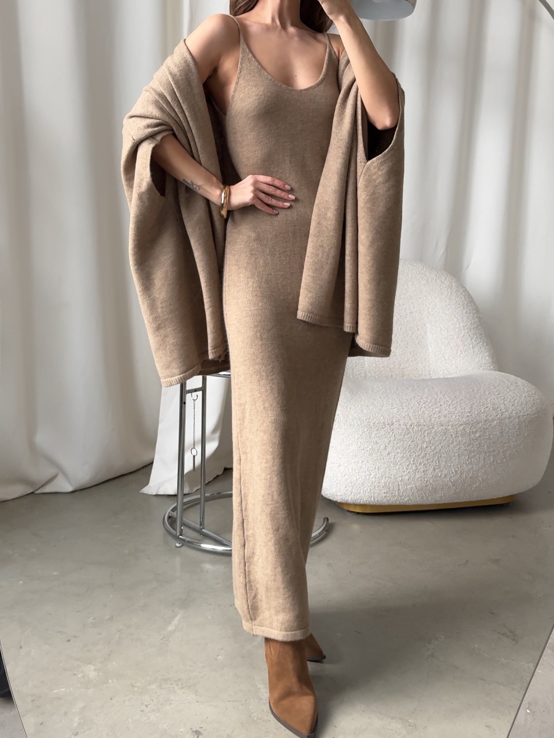 Комплект вязаный, длинное платье на лямках и короткий кардиган