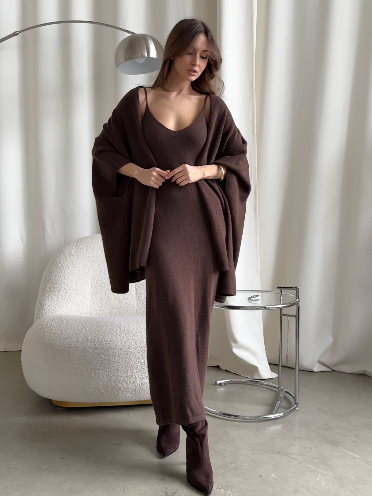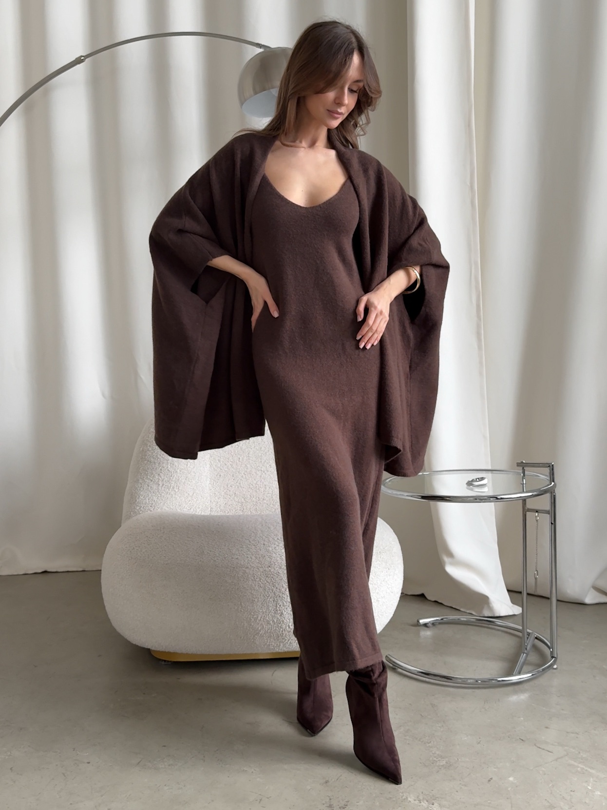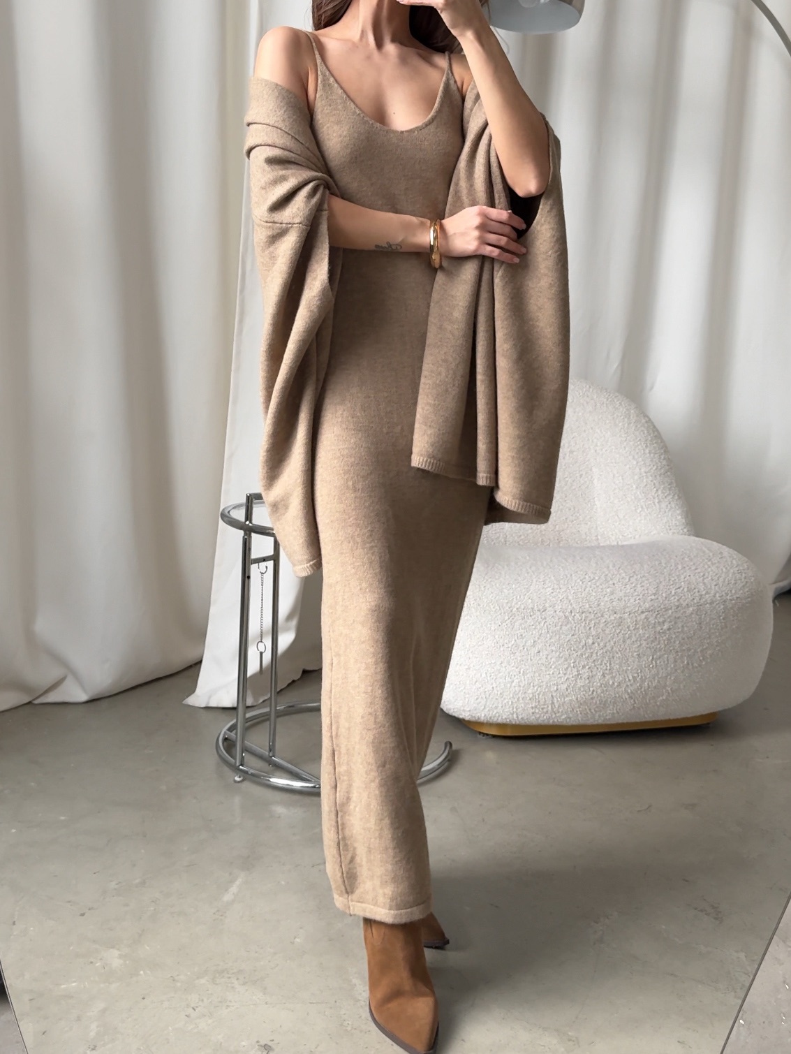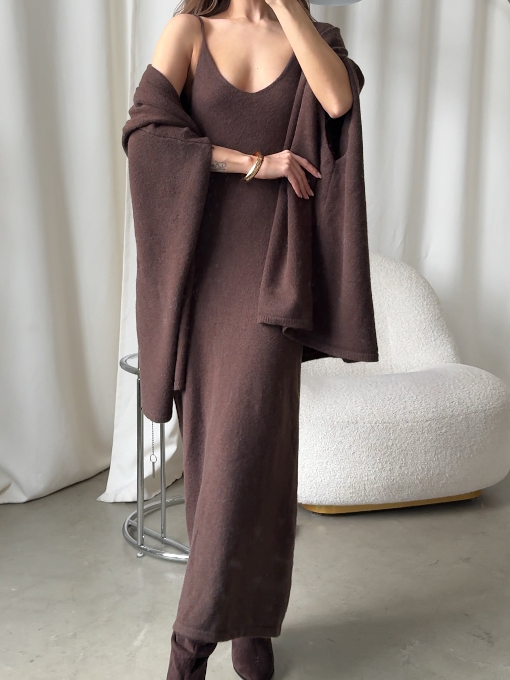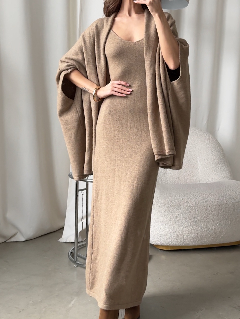 Комплект вязаный, длинное платье на лямках и короткий кардиган