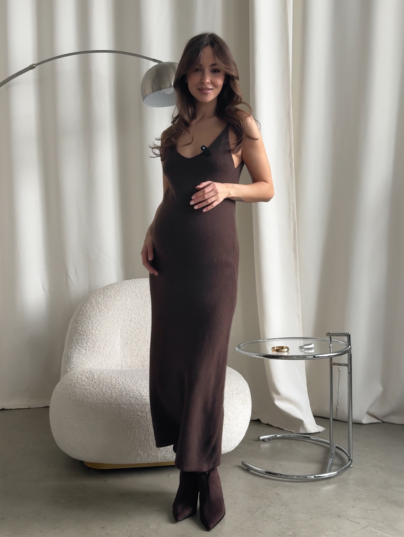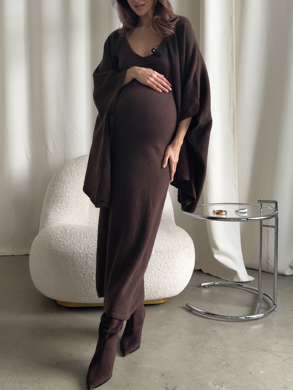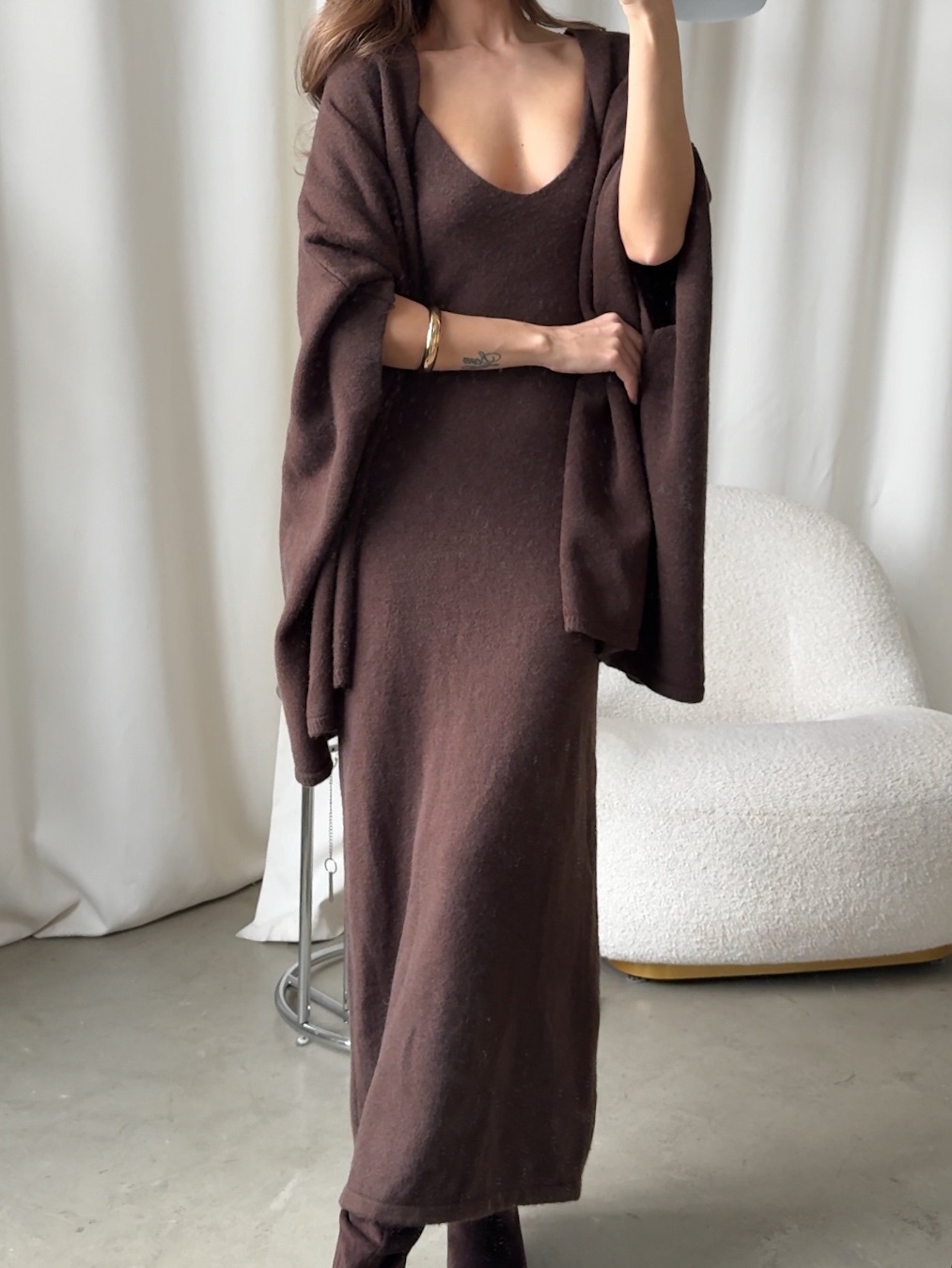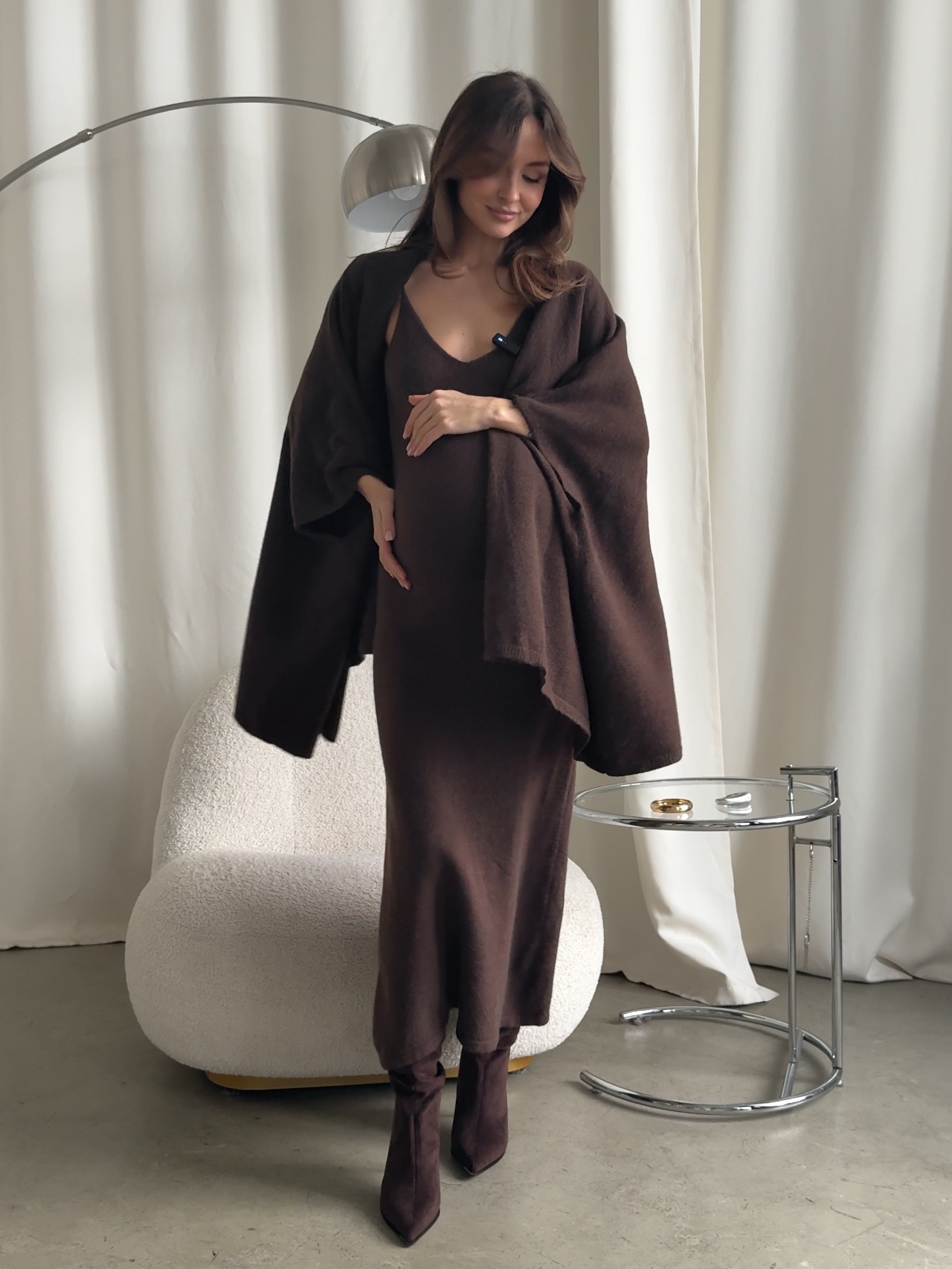 Комплект вязаный, длинное платье на лямках и короткий кардиган
