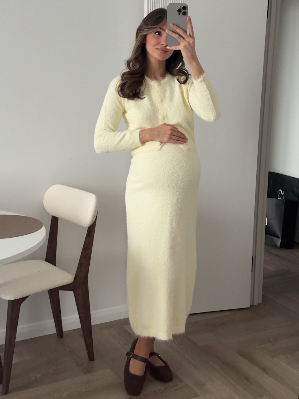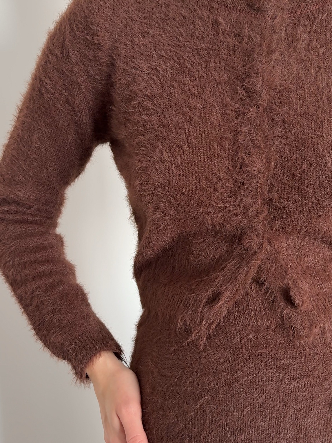 Комплект вязаный, пушистый, длинная юбка и укороченный кардиган