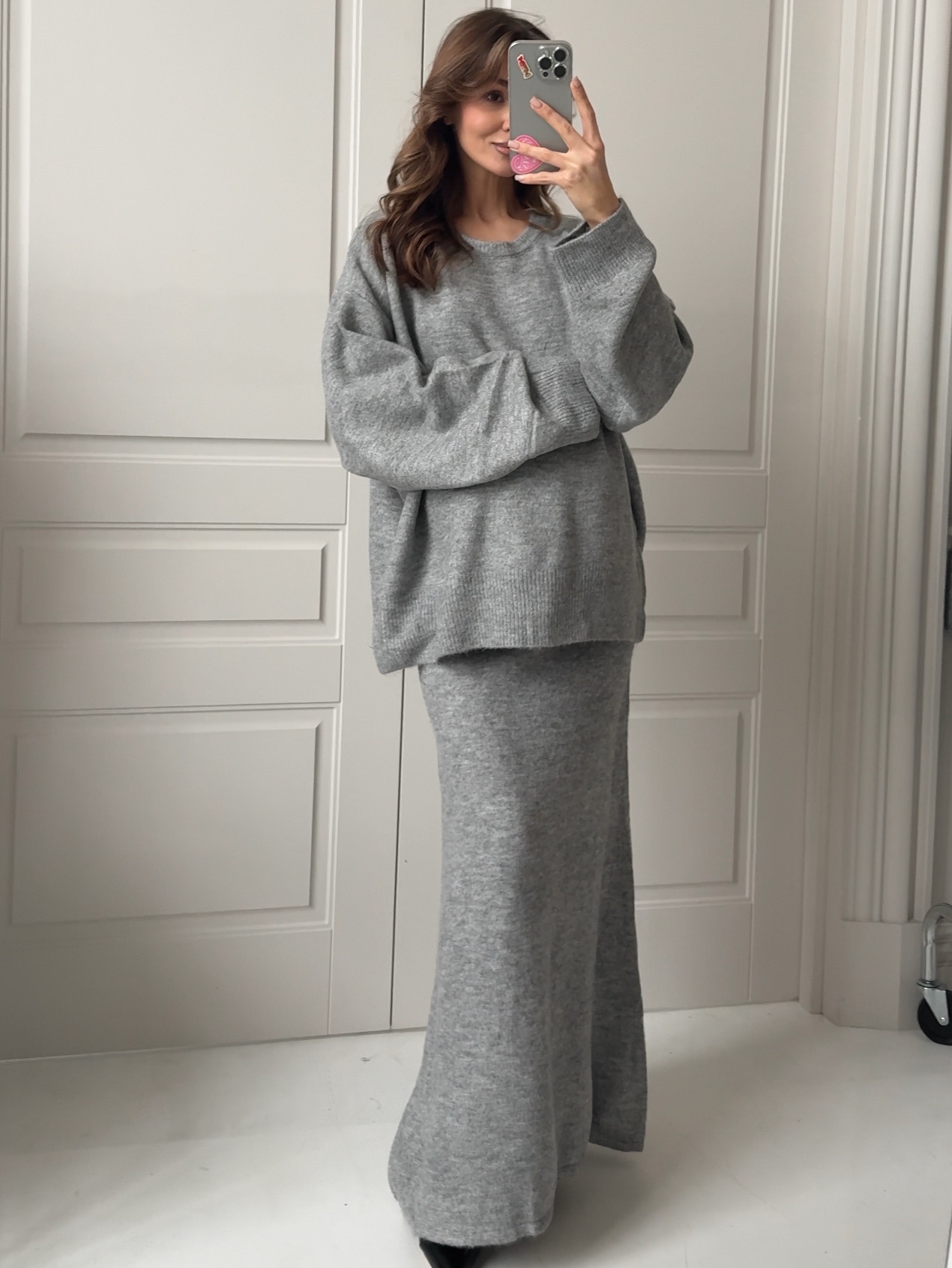 Комплект вязаный, свитер свободного кроя и длинная юбка