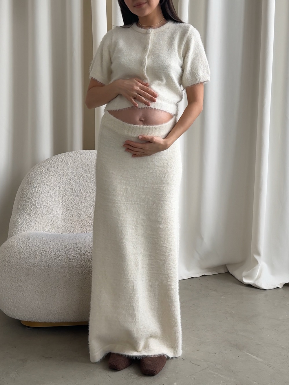 Комплект вязаный, укороченный топ и длинная юбка