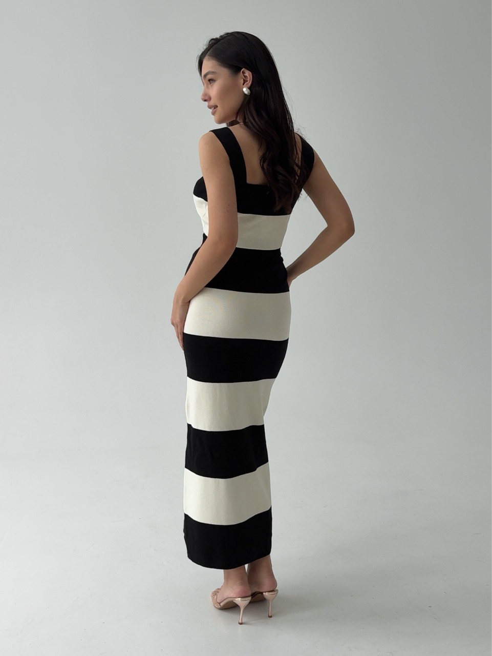 Комплект вязаный, в полоску, топ на лямках и длинная юбка