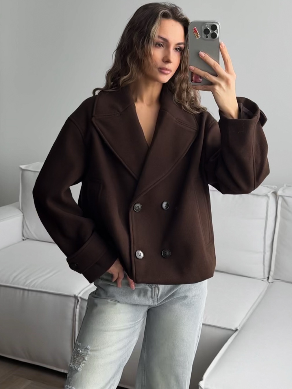Пальто двубортное, укороченное