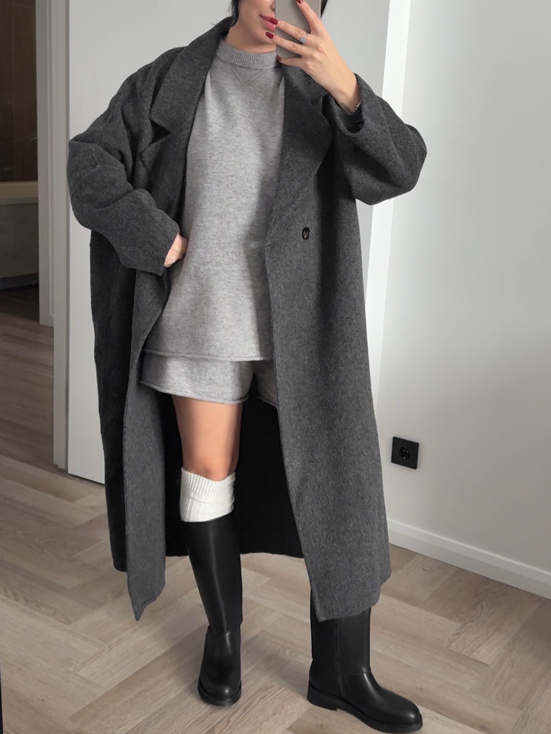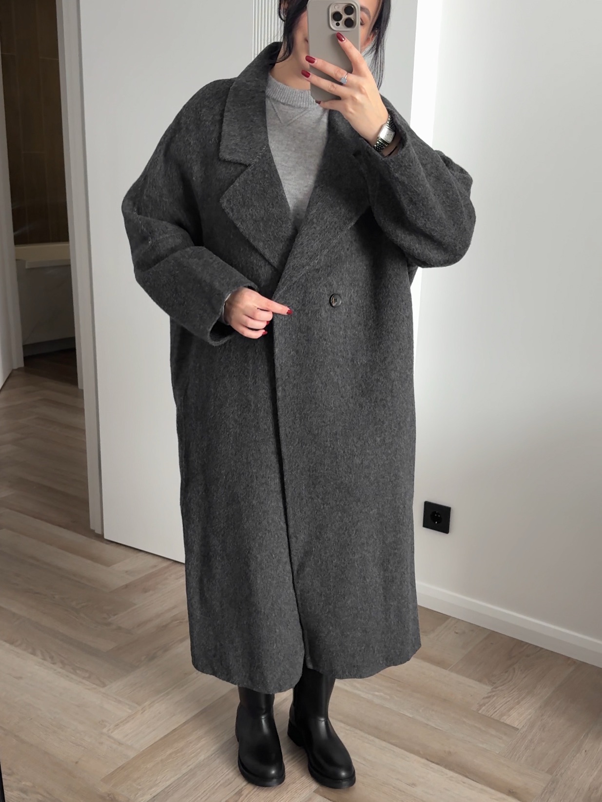 Пальто из шерсти, двубортное, длинное