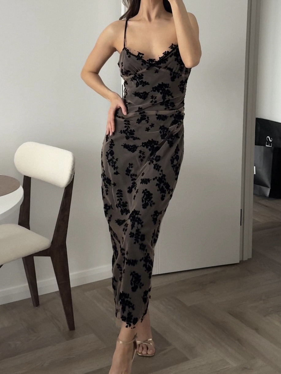 Платье длинное, с подкладом, на бретелях