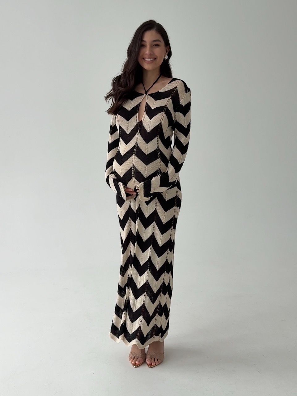 Платье из легкой вязки, пляжное, с геометрическим принтом