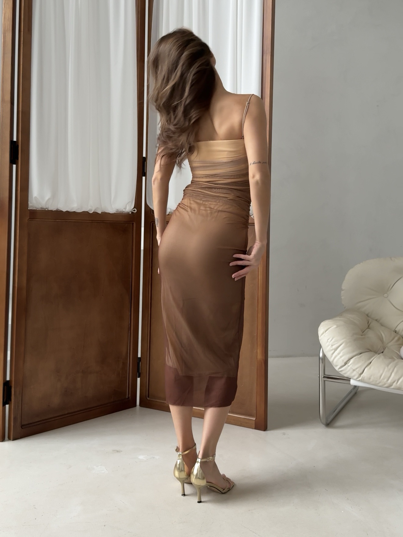 Платье сетчатое, длинное, с подкладом, на регулируемых бретелях