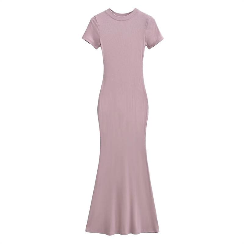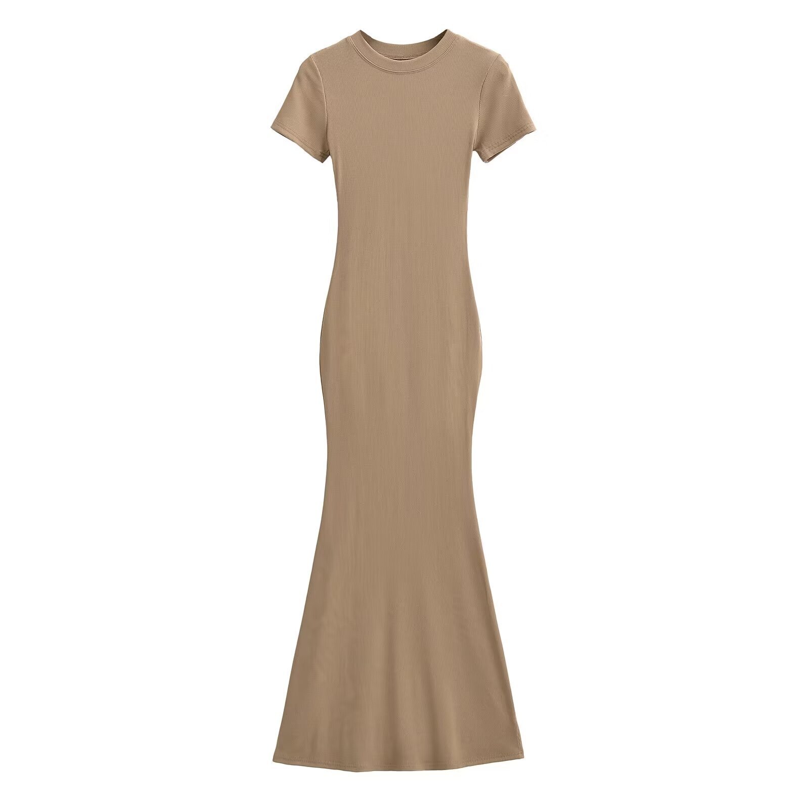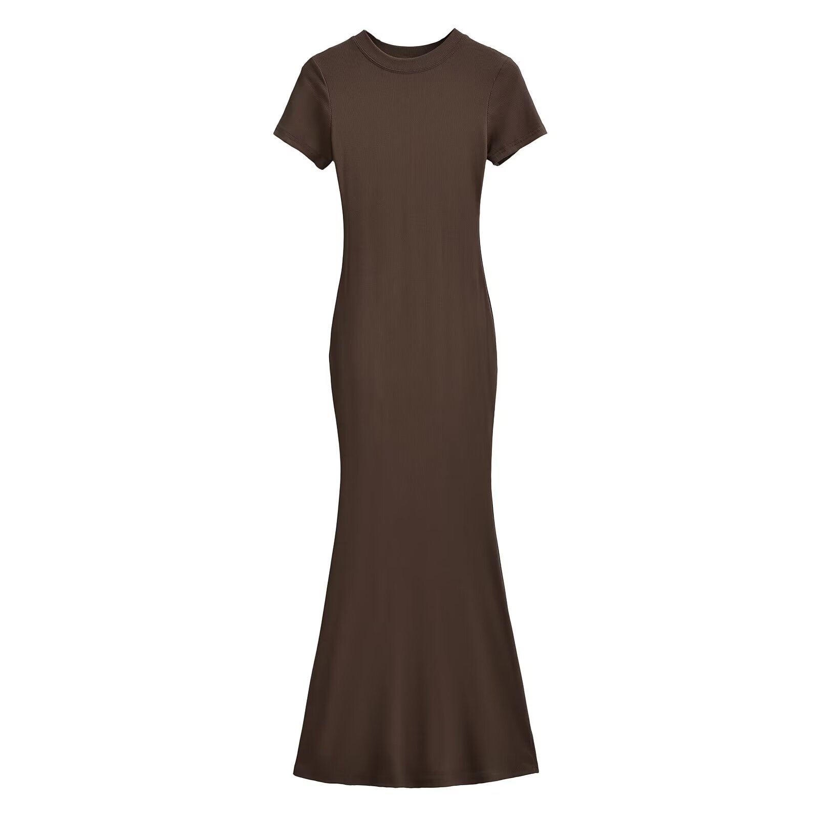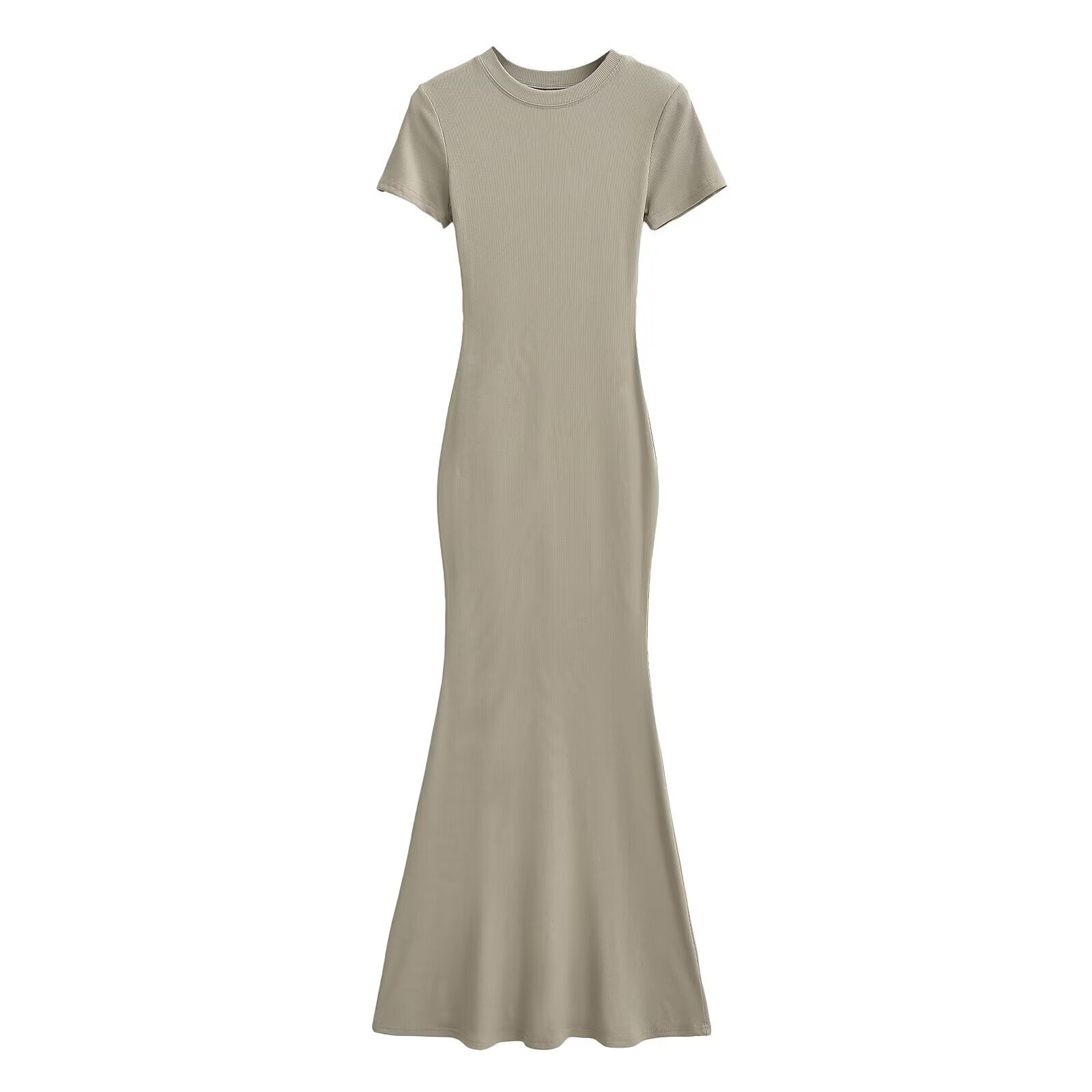 Платье трикотажное, длинное, базовое, с короткими рукавами