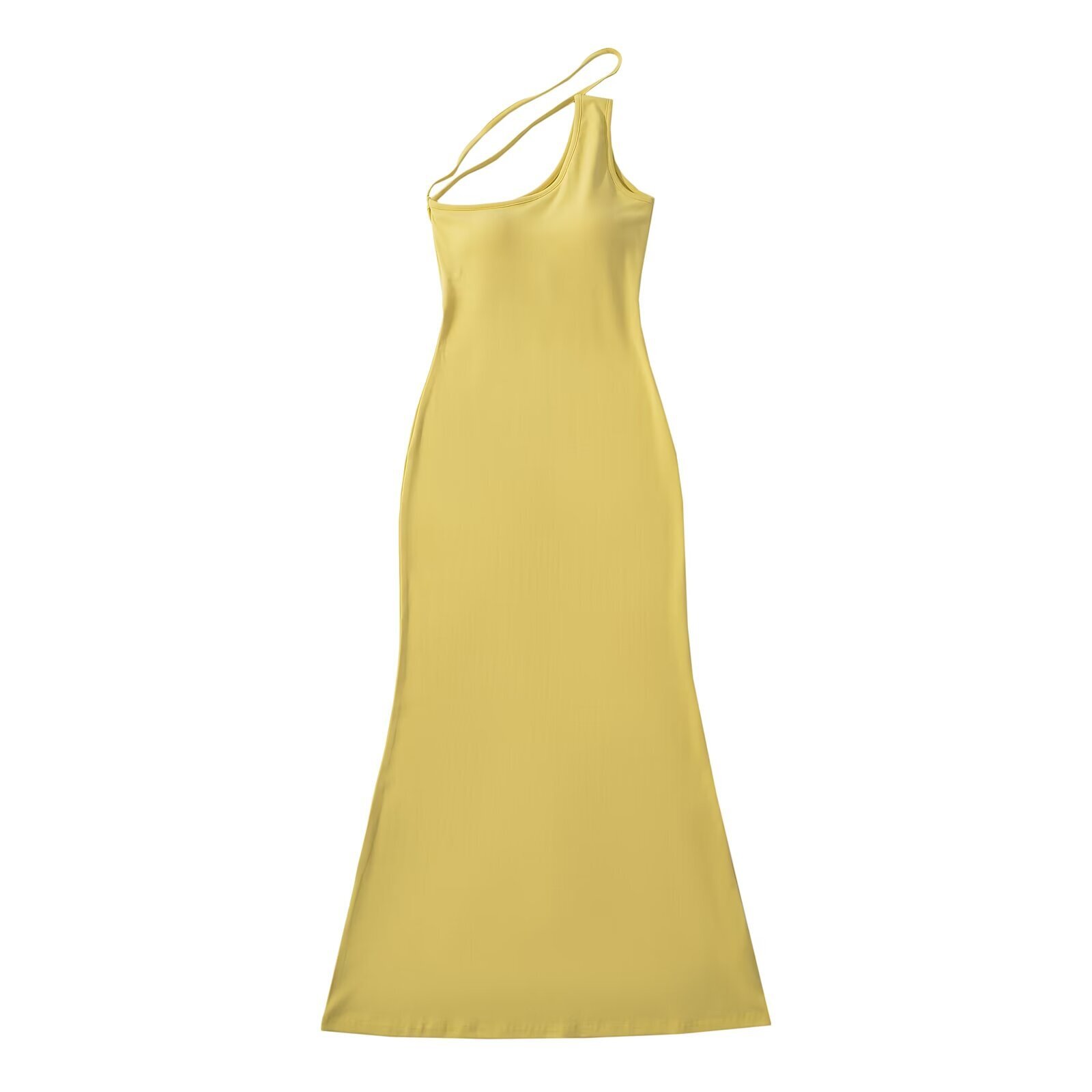Платье трикотажное, длинное, расклешенное, на одно плечо