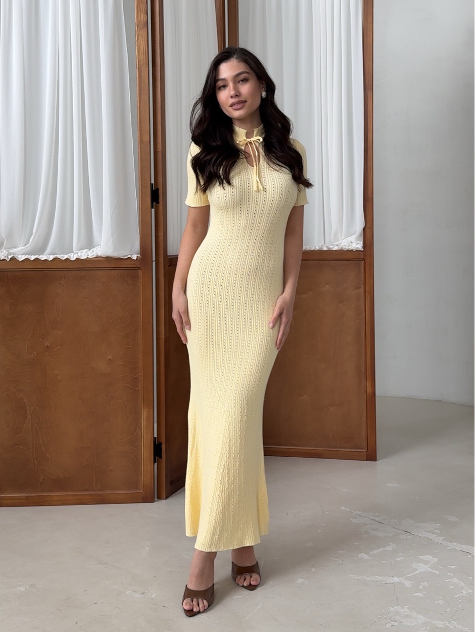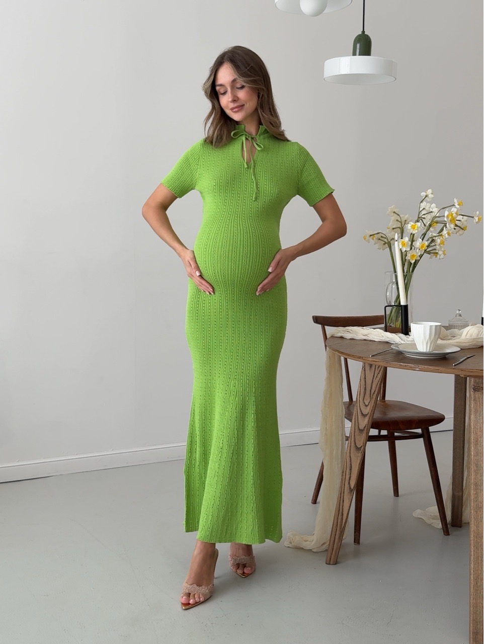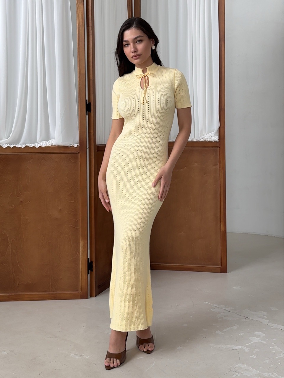Платье вязаное, длинное, с воротником стойкой