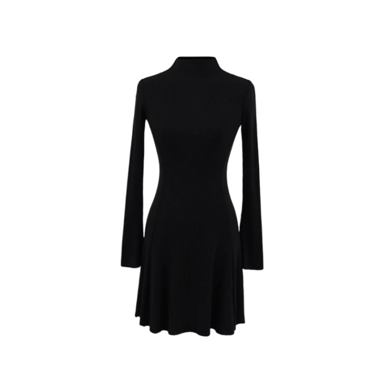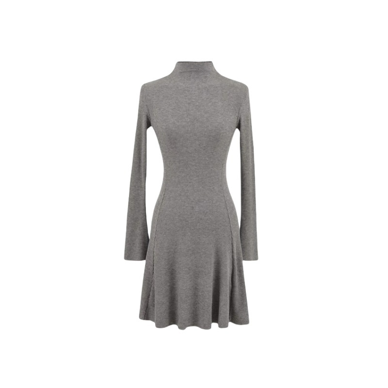 Платье трикотажное, короткое, с длинными рукавами, расклешенное