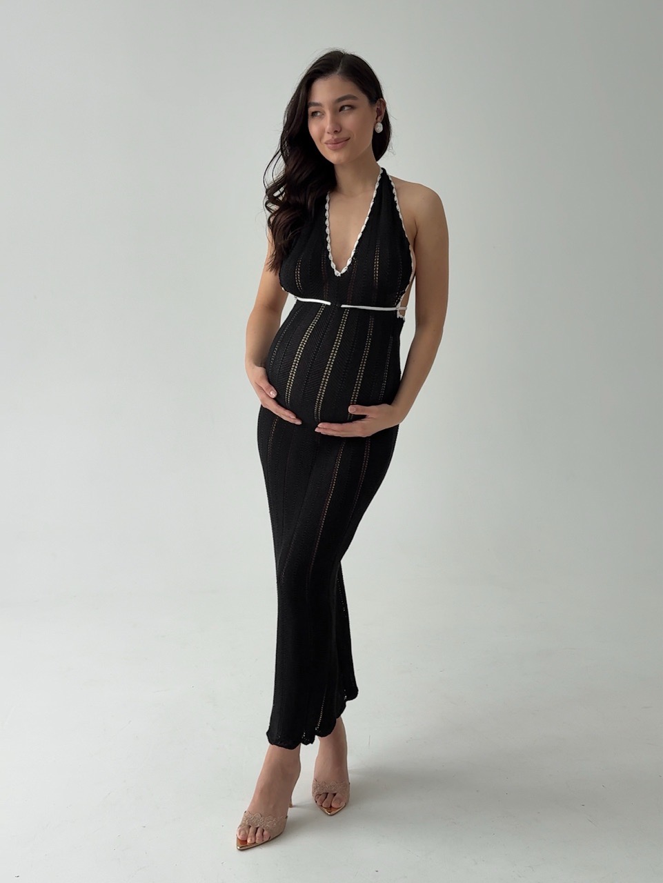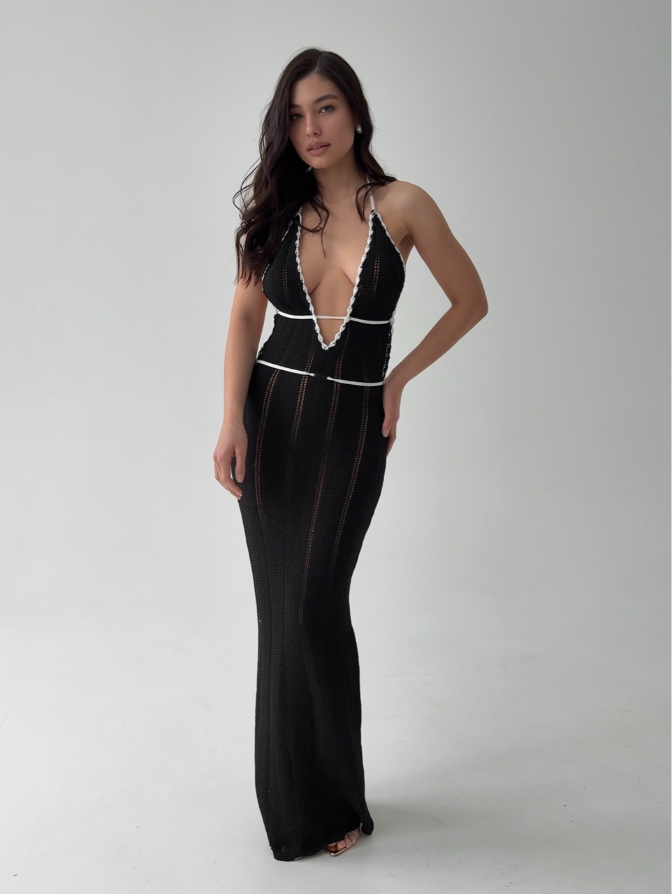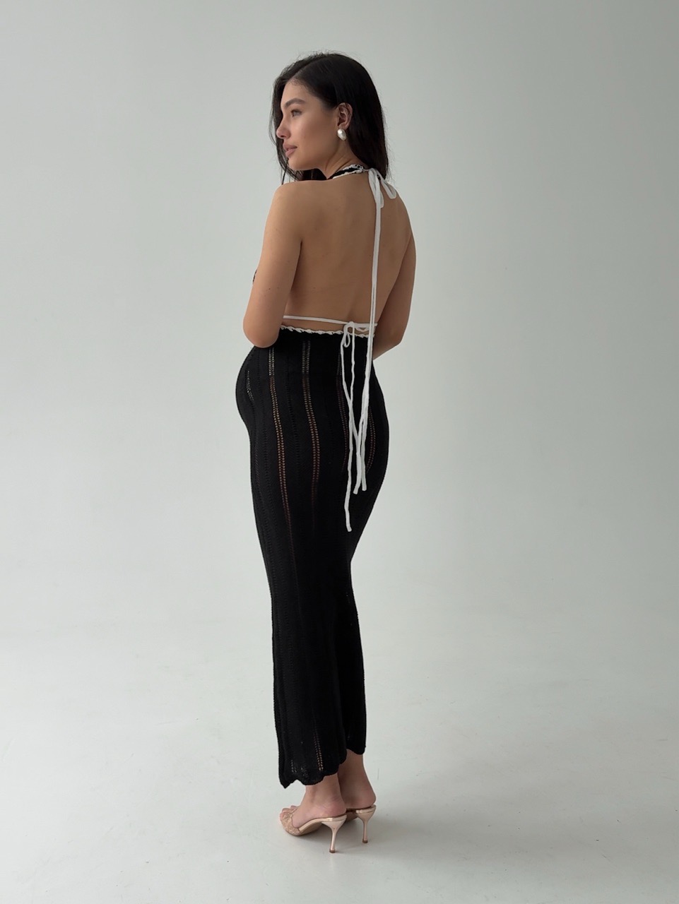 Платье вязаное, пляжное, длинное, с открытой спиной
