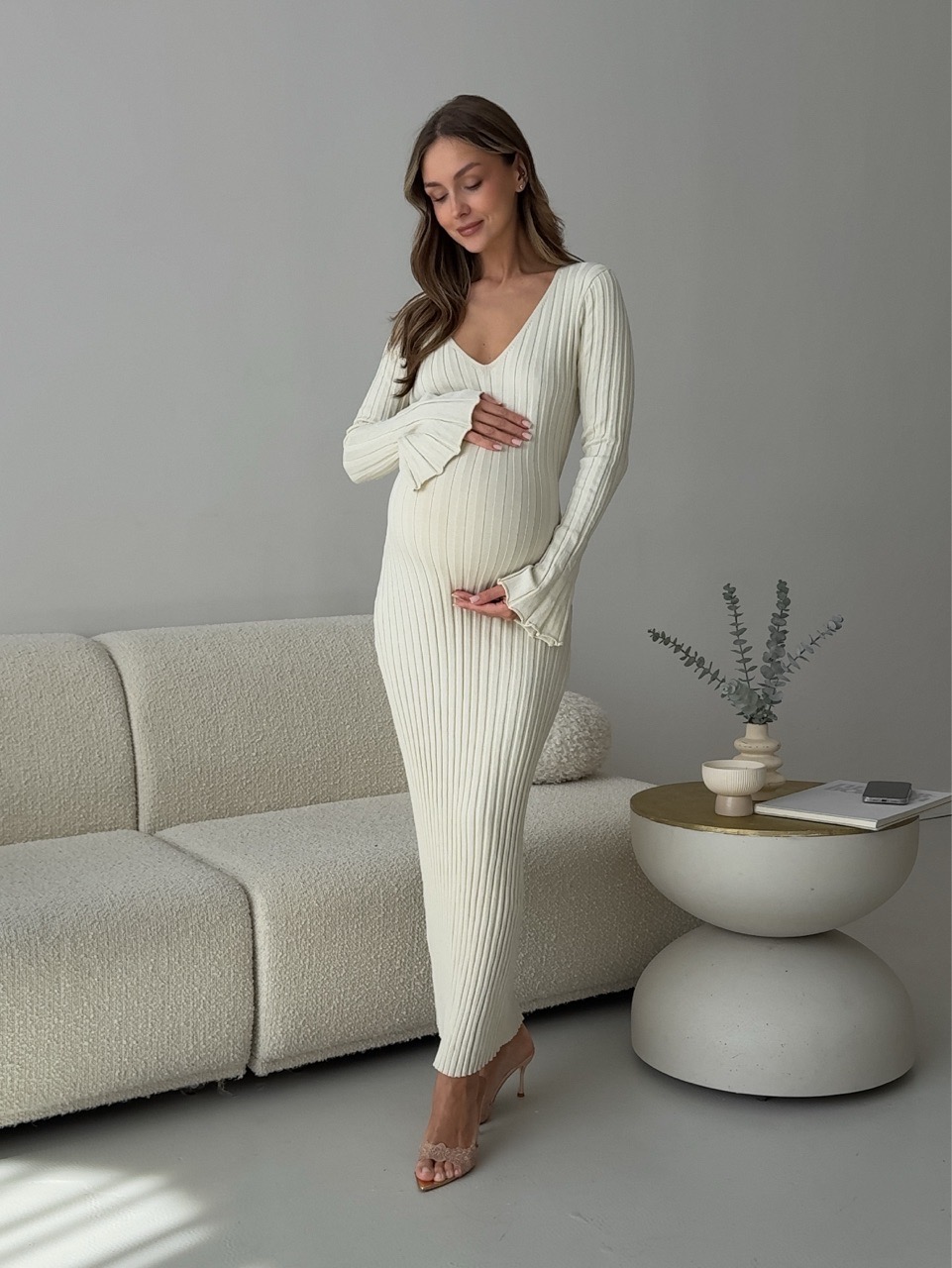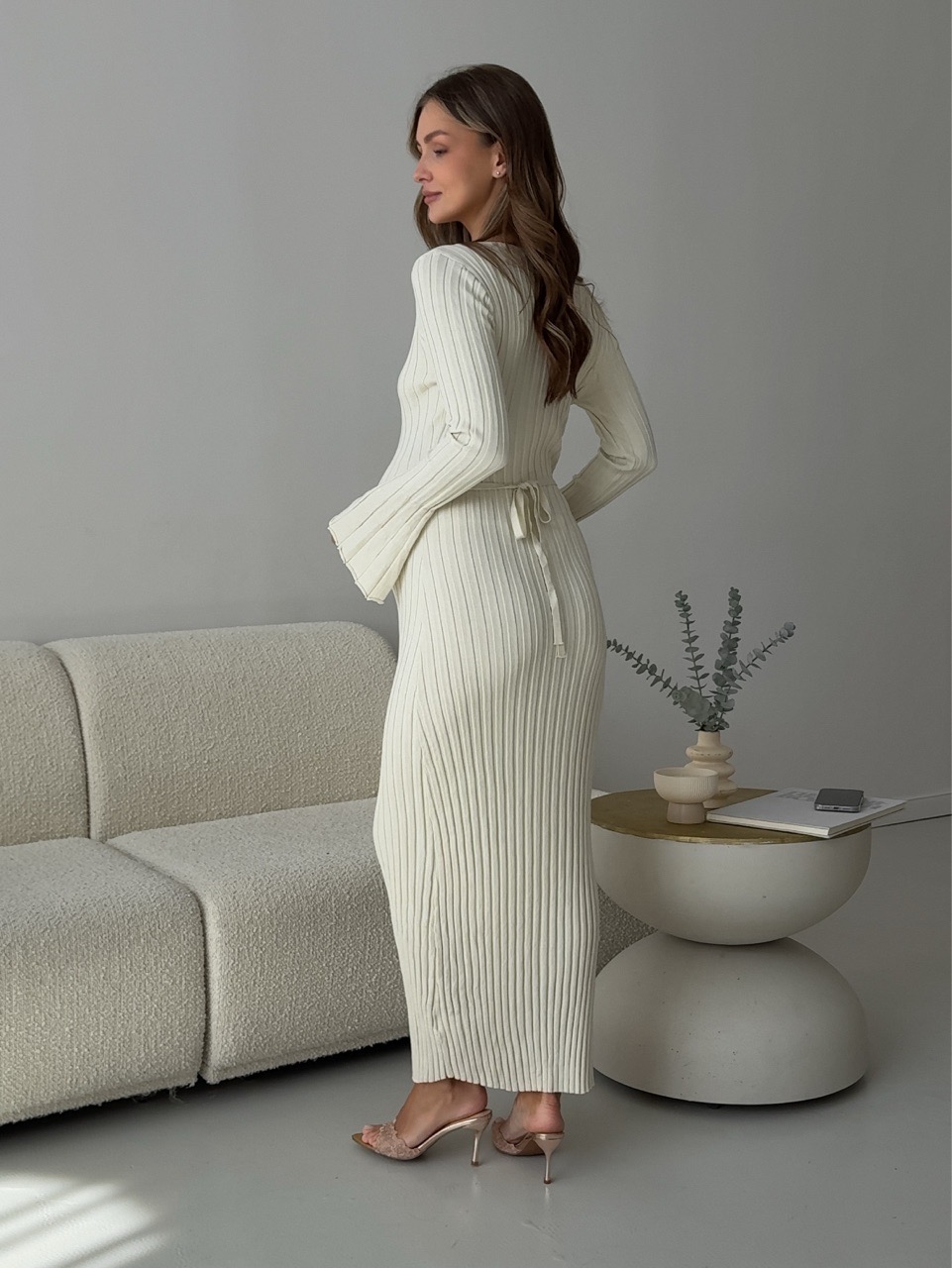 Платье вязаное, с v-образным вырезом, с завязкой и расклешенными рукавами