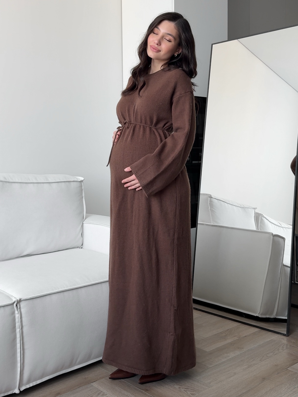 Платье вязаное, широкое, длинное, с завязкой