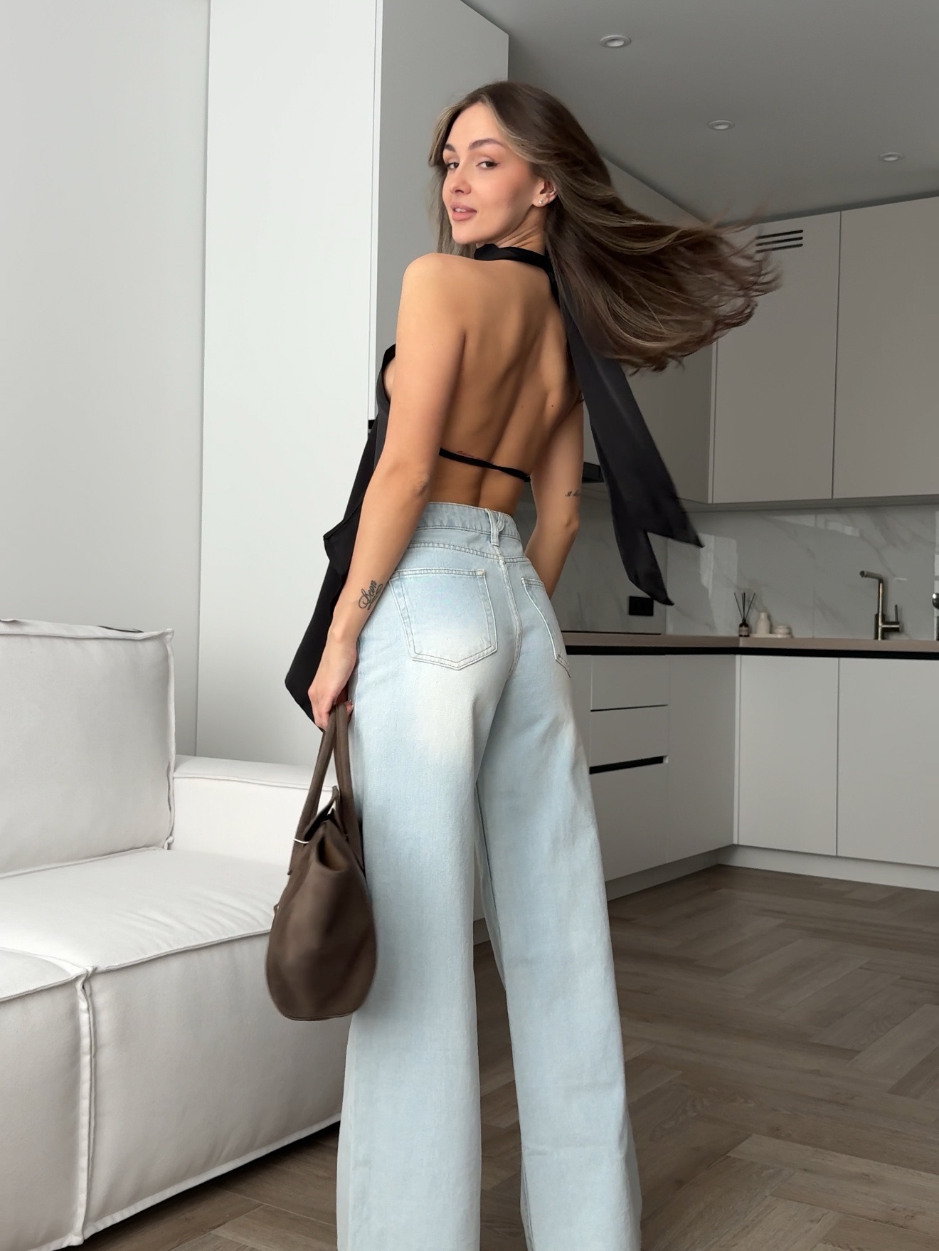 Топ шелковый, с открытой спиной на бретели