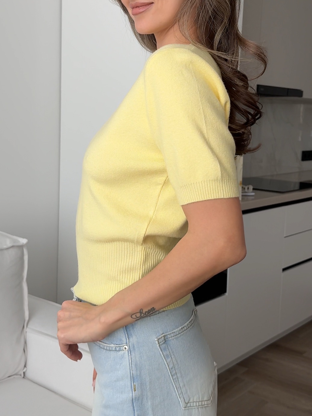 Топ вязаный, базовый, с коротким рукавом