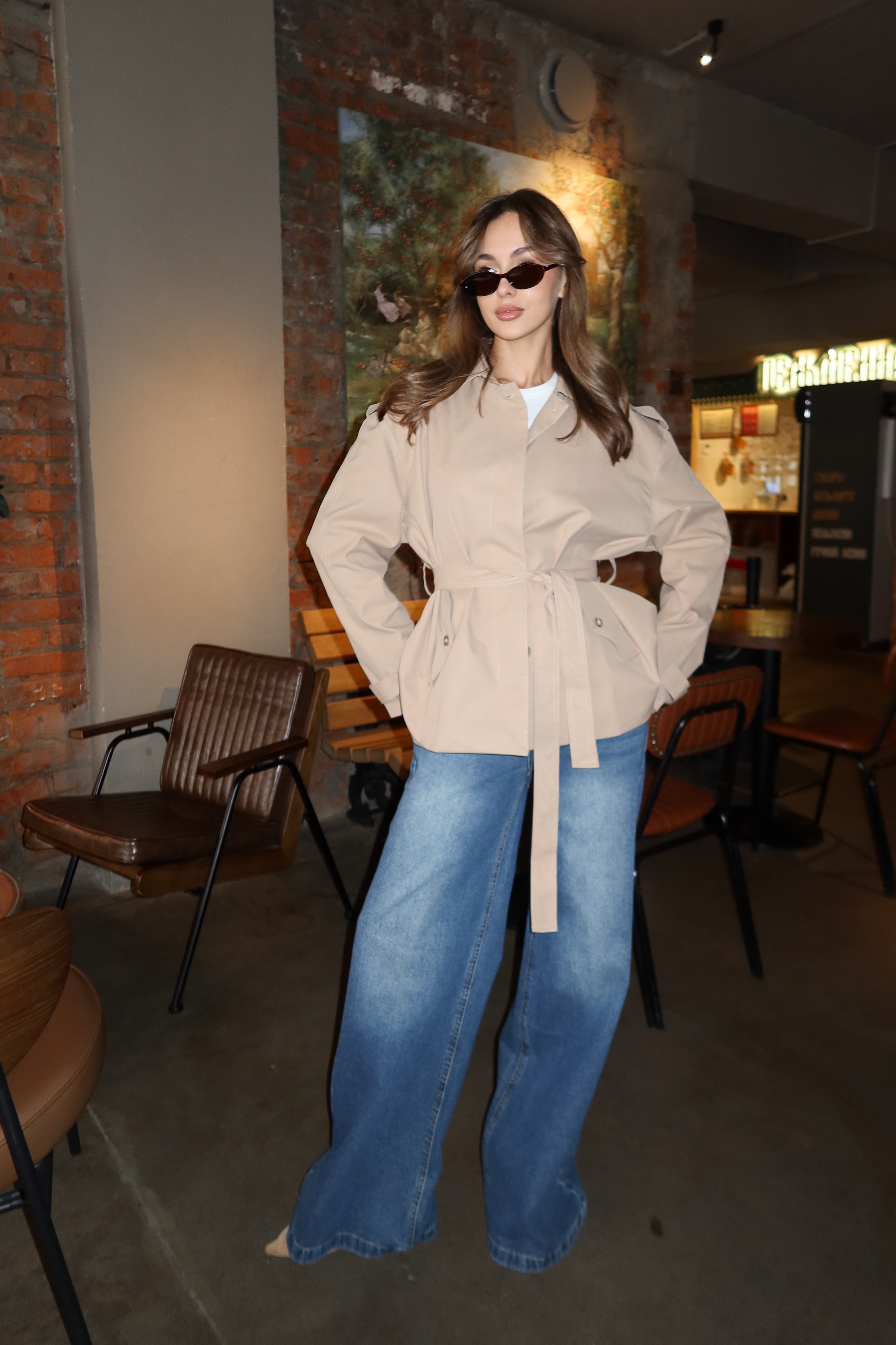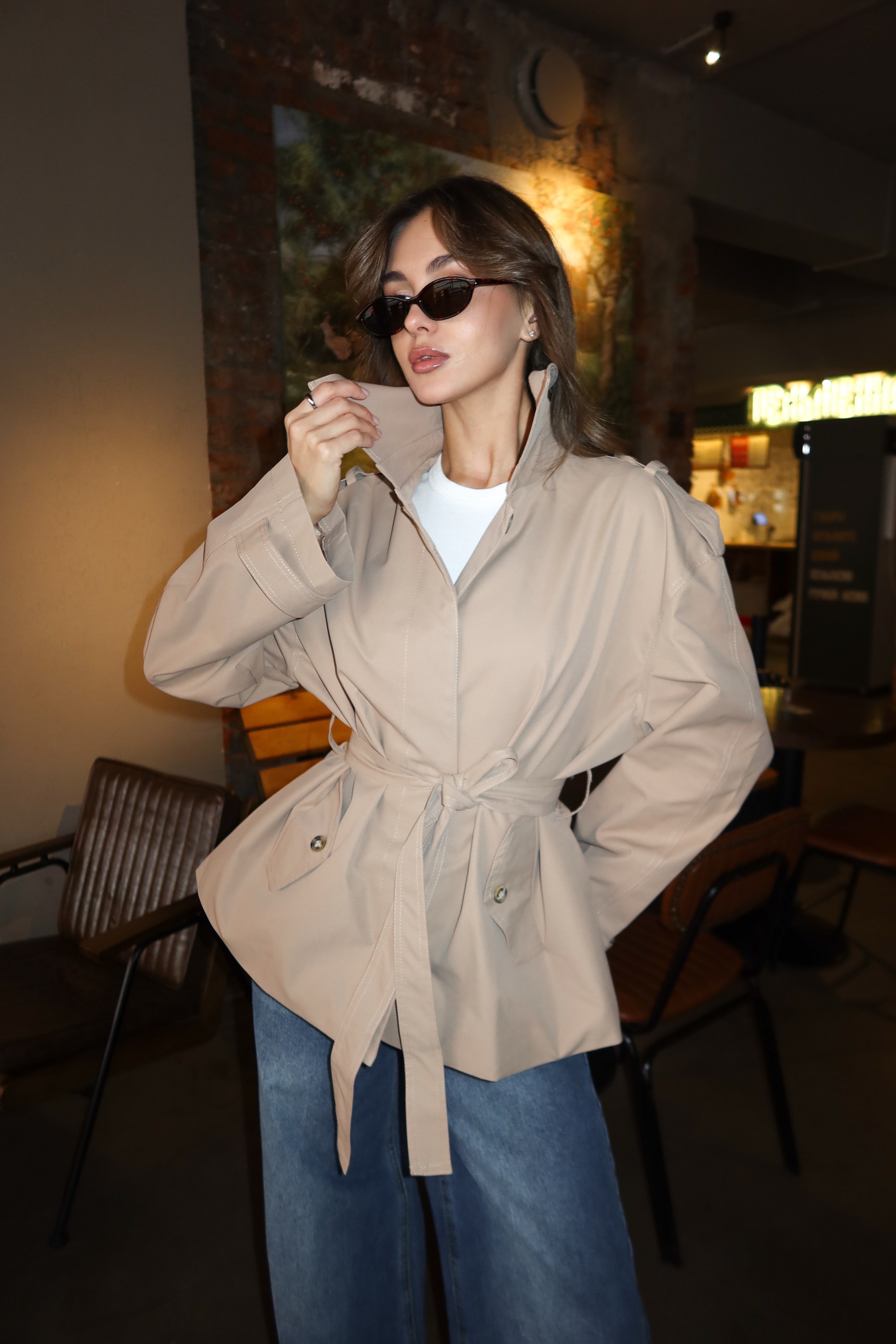 Тренч укороченный, с поясом
