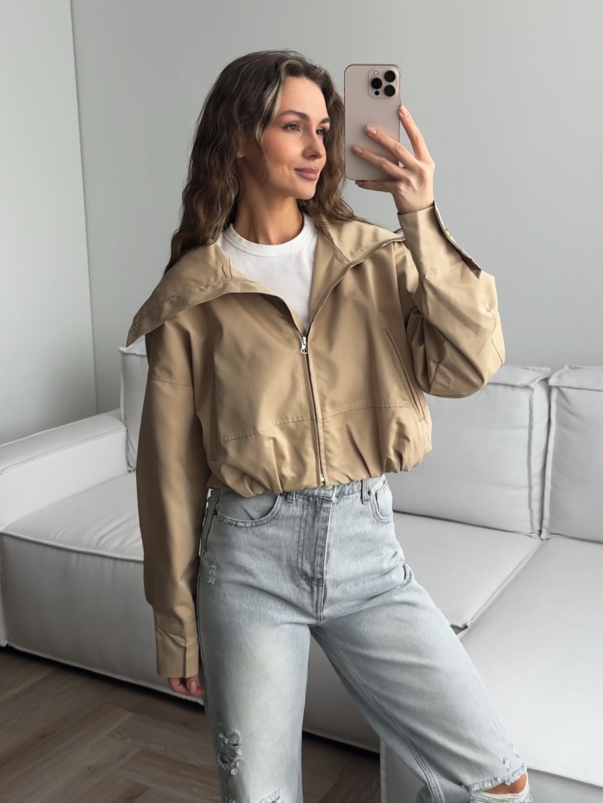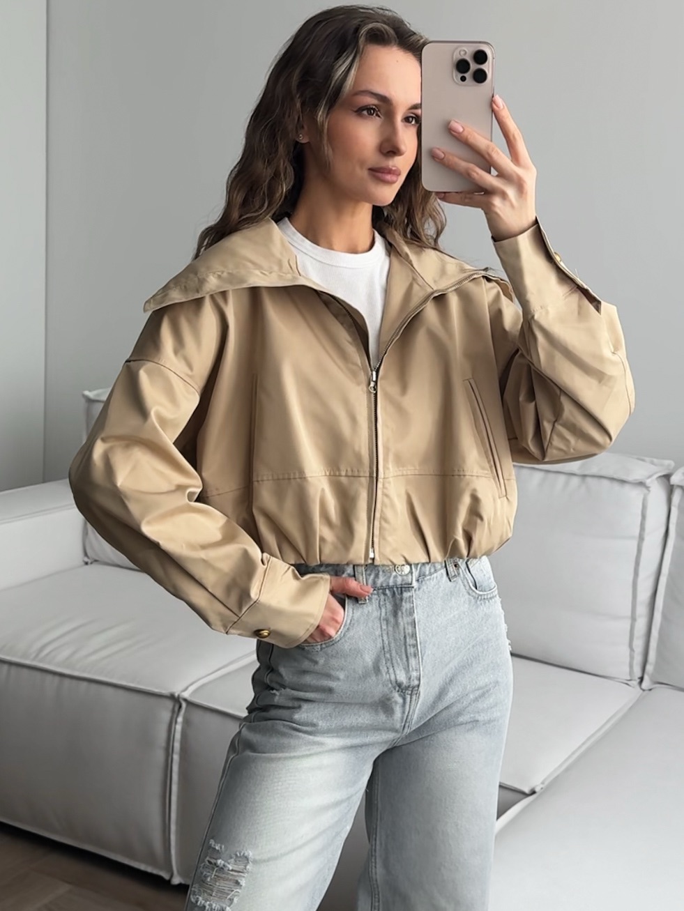 Ветровка укороченная, на молнии, с воротом